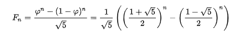 마지막으로 피보나치 수의 일반항을 이용하는 것이다. 이번 게시글을 작성하면서 새롭게 알게 된 내용이다.