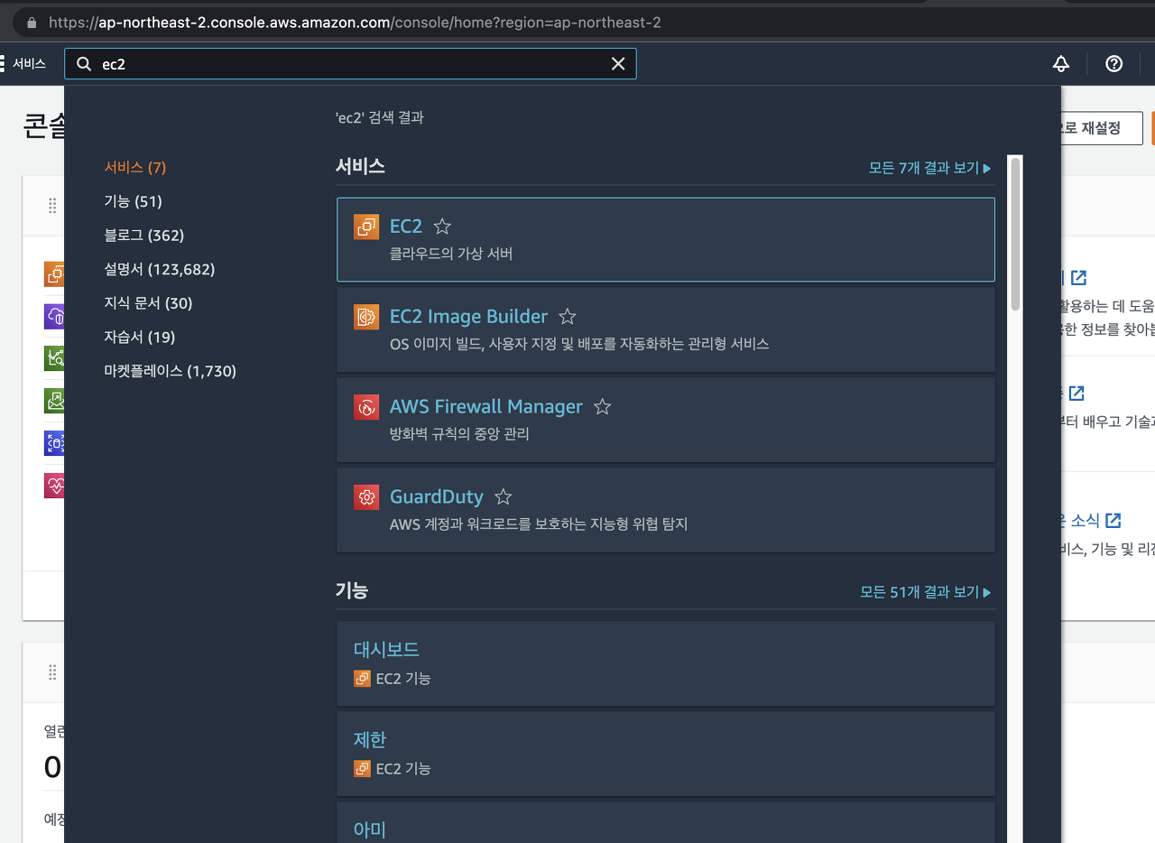 1. EC2 인스턴스 생성을 위해서 EC2 서비스 접속