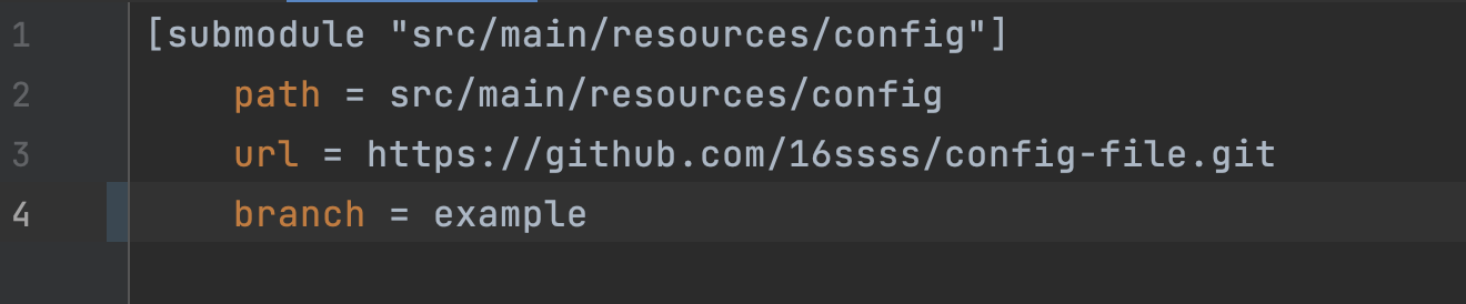 예를 들어 config-file 레파지토리를 spring boot 프로젝트의 resources/config 디렉터리에 포함하고 싶다면 아래와 같이 작성하면 된다.