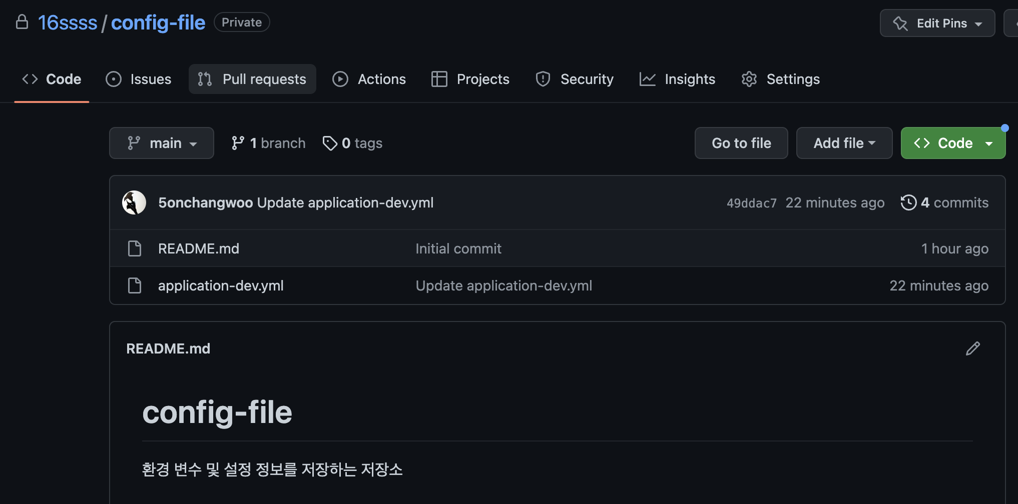 5. 만약 config-file을 최신화해야 하는 경우 git submodule update --remote를 입력하면 자동으로 최신화가 되게 된다.