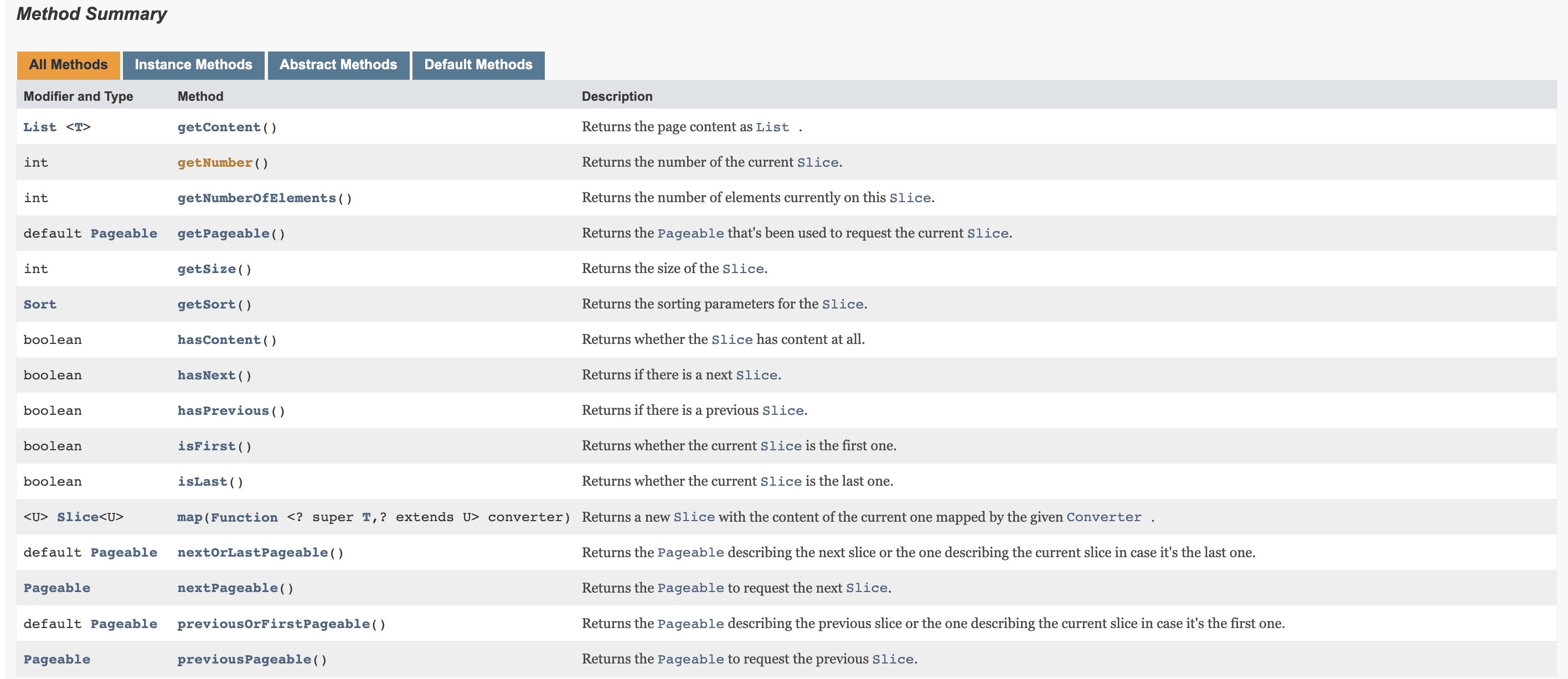 Page가 상속받고 있는 Slice 클래스의 메서드