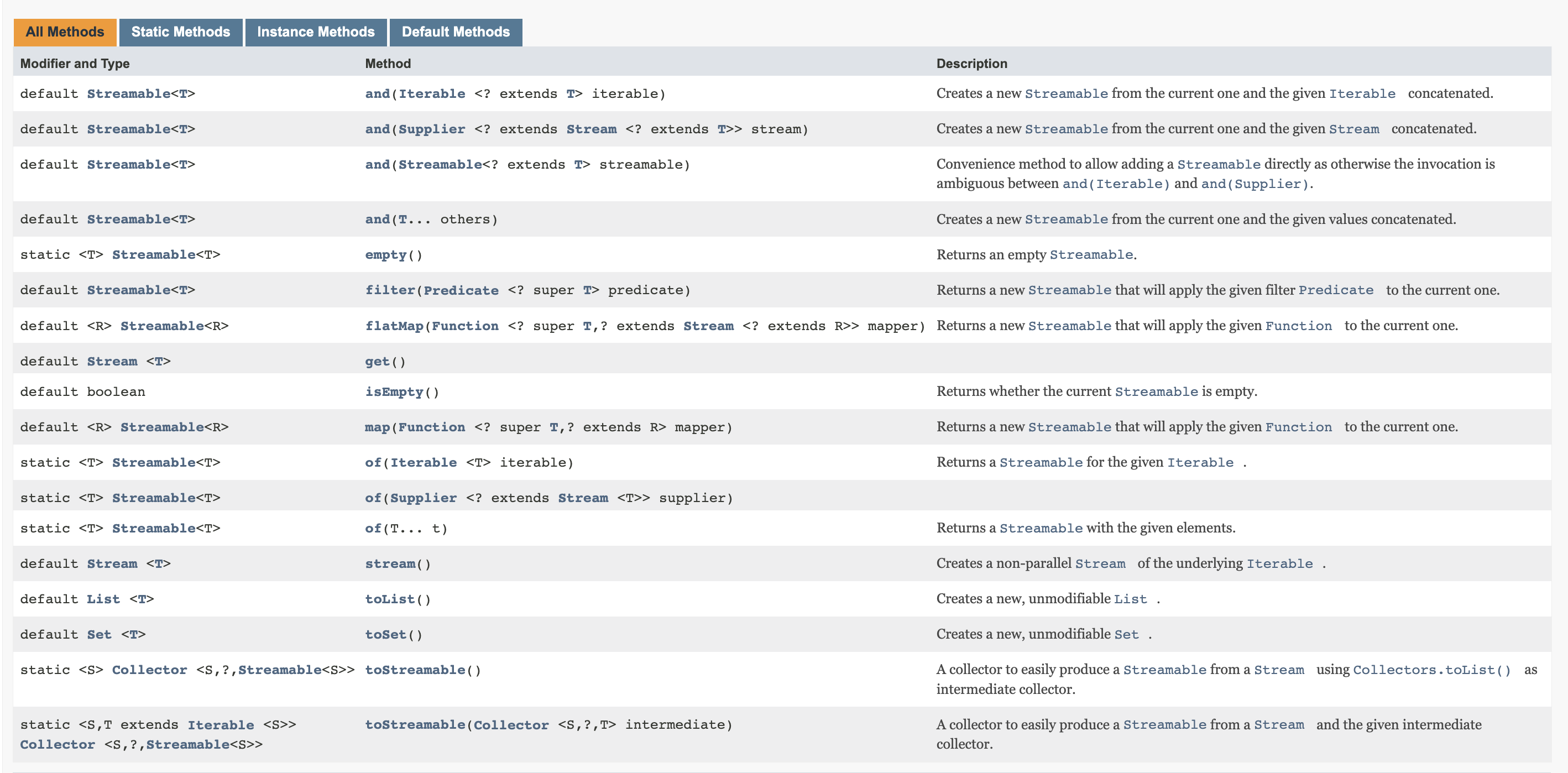 - Streamable<T> 형태로 받으면 stream을 사용할 수 있는 타입으로 반환되어 사용할 수 있다.