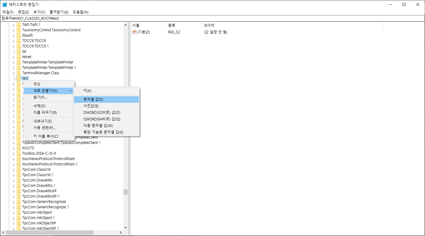 2. HKEY_CLASSES_ROOT 하위에 키를 생성해 준다.