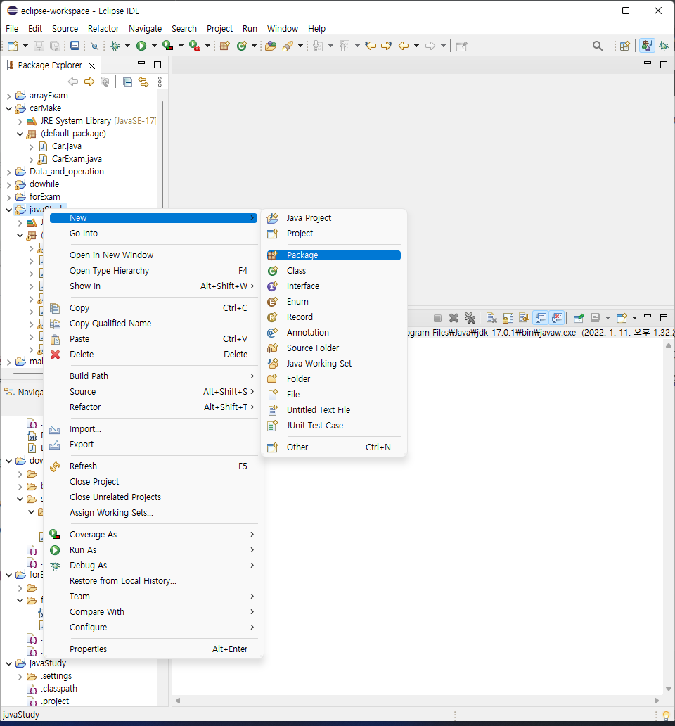 이클립스에서 패키지 생성하기