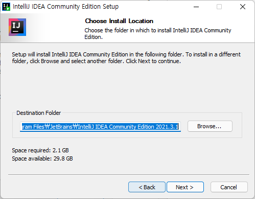 인텔리제이가 설치될 폴더를 정해주고 next를 눌러줍니다.