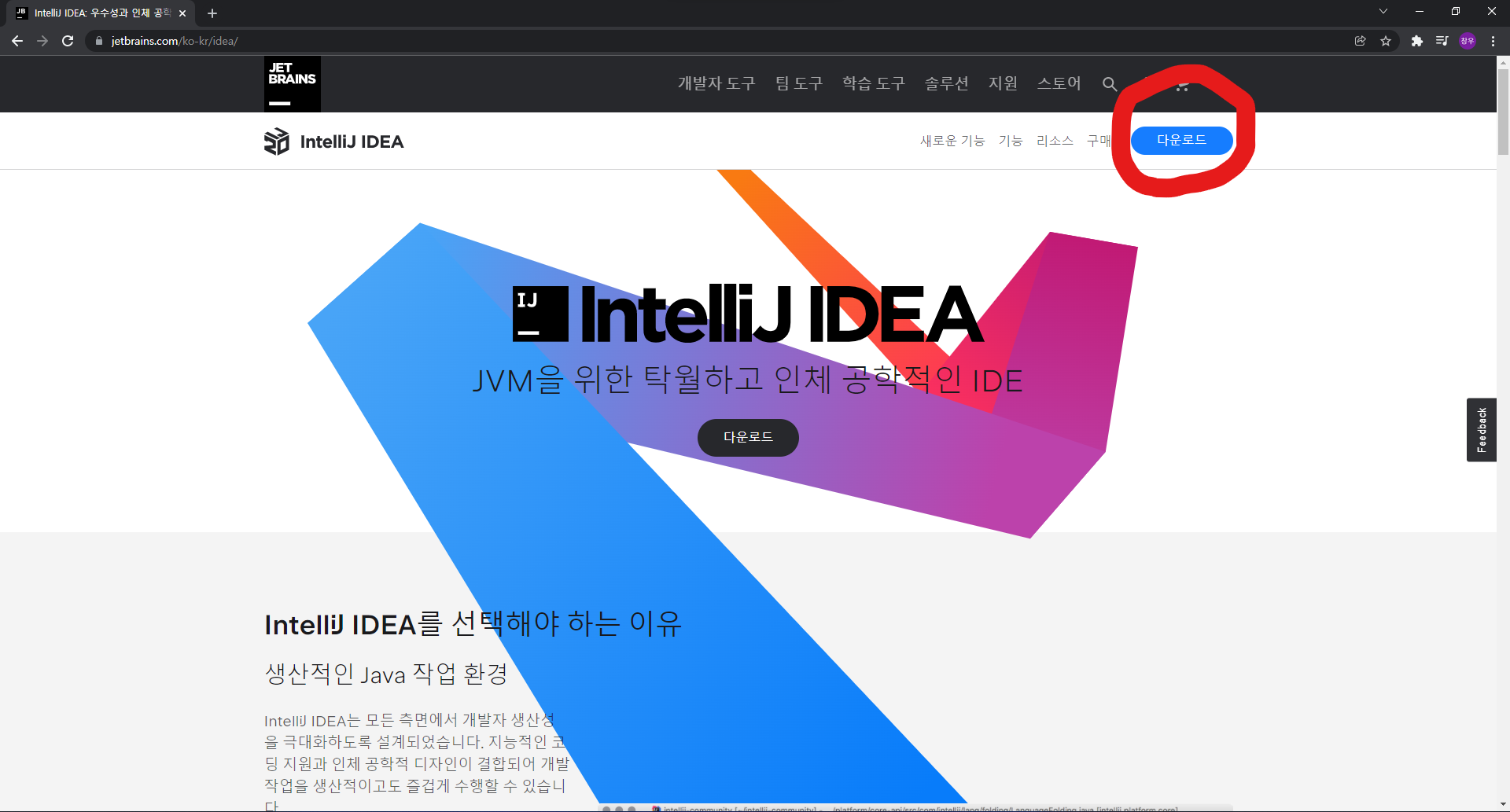 먼저 인텔리제이 홈페이지에 들어갑니다.