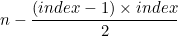 n (입력값)- 이전 index까지의 총개수를 해주면 나옴(index-1까지의 등차수열의 합)