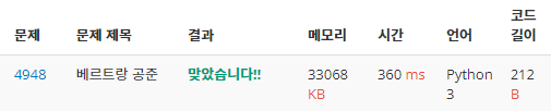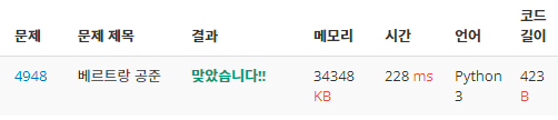 두 번째 코드는 정답을 맞힌 후에 다른 사람들은 어떻게 풀었나 구경중 놀라운 코드를 보아서 그걸 보고 응용해서 만들어봤다.