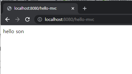 http://localhost:8080/hello-mvc 접속하면 기본 값인 son으로 나오는 것을 볼 수 있다.