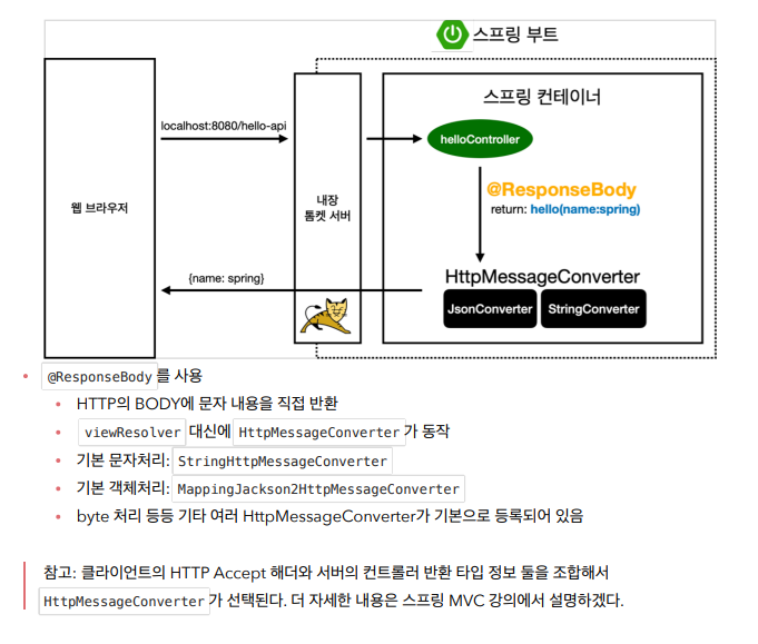 기존의 생성 방식과 동일함. 하지만 @GetMapping아래 @ResponseBody를 추가로 어노테이션 해준다