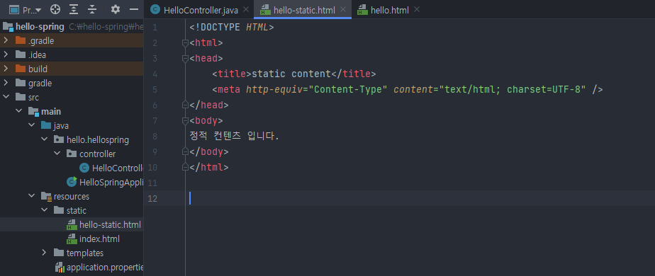 동작 확인 - localhost:8080/hello-static.html 접속해보기